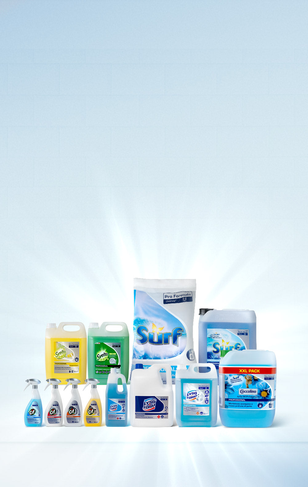 Una vasta selezione di dispositivi di protezione individuale, prodotti per l’igiene e la cura del paziente, disinfettanti, sanificatori, prodotti cartacei e dispenser, pronto soccorso e diagnostica.
